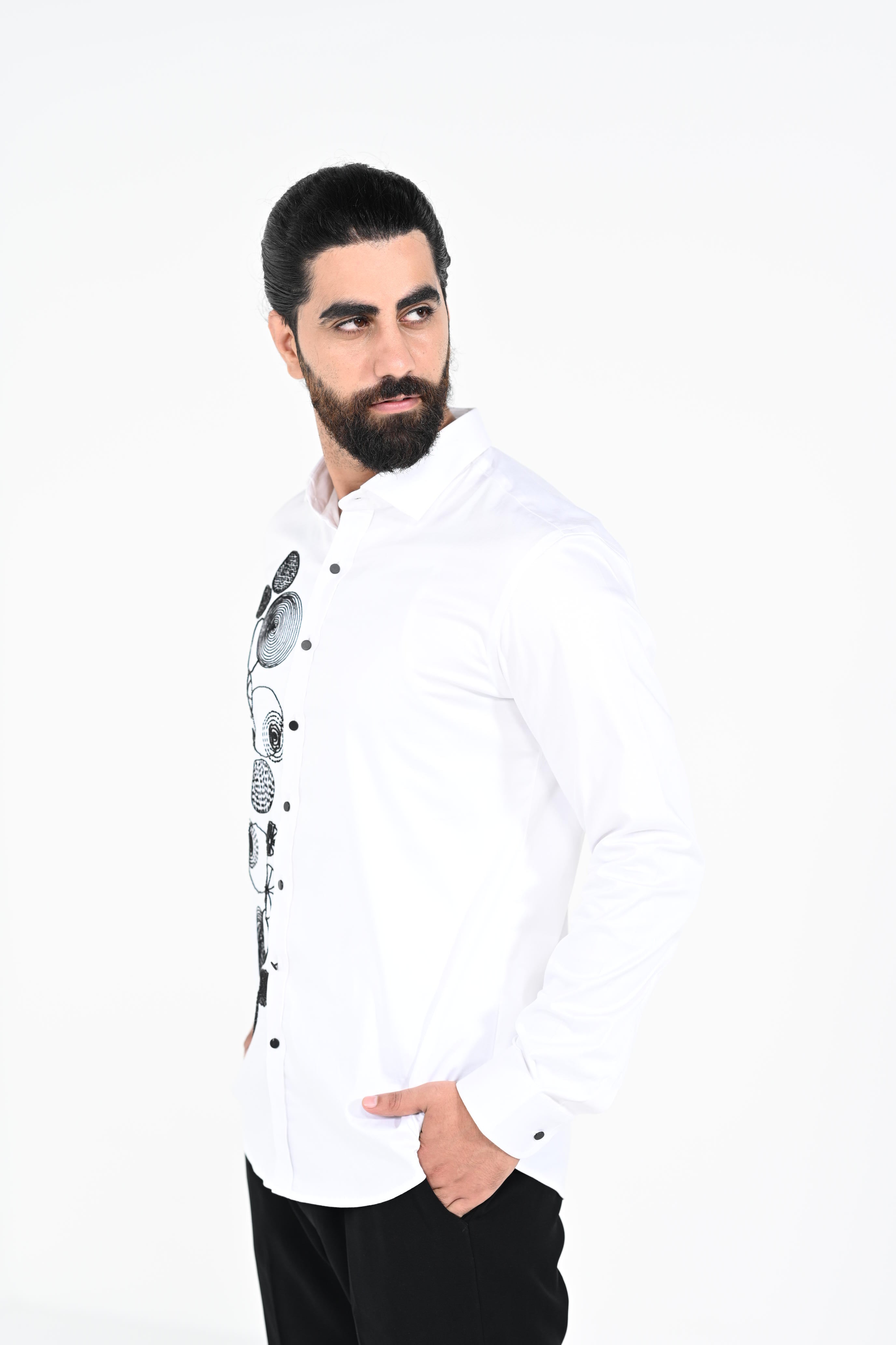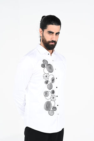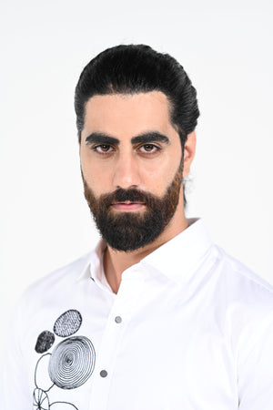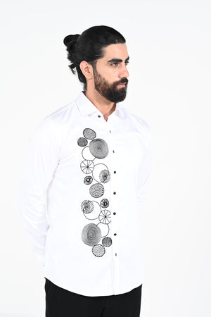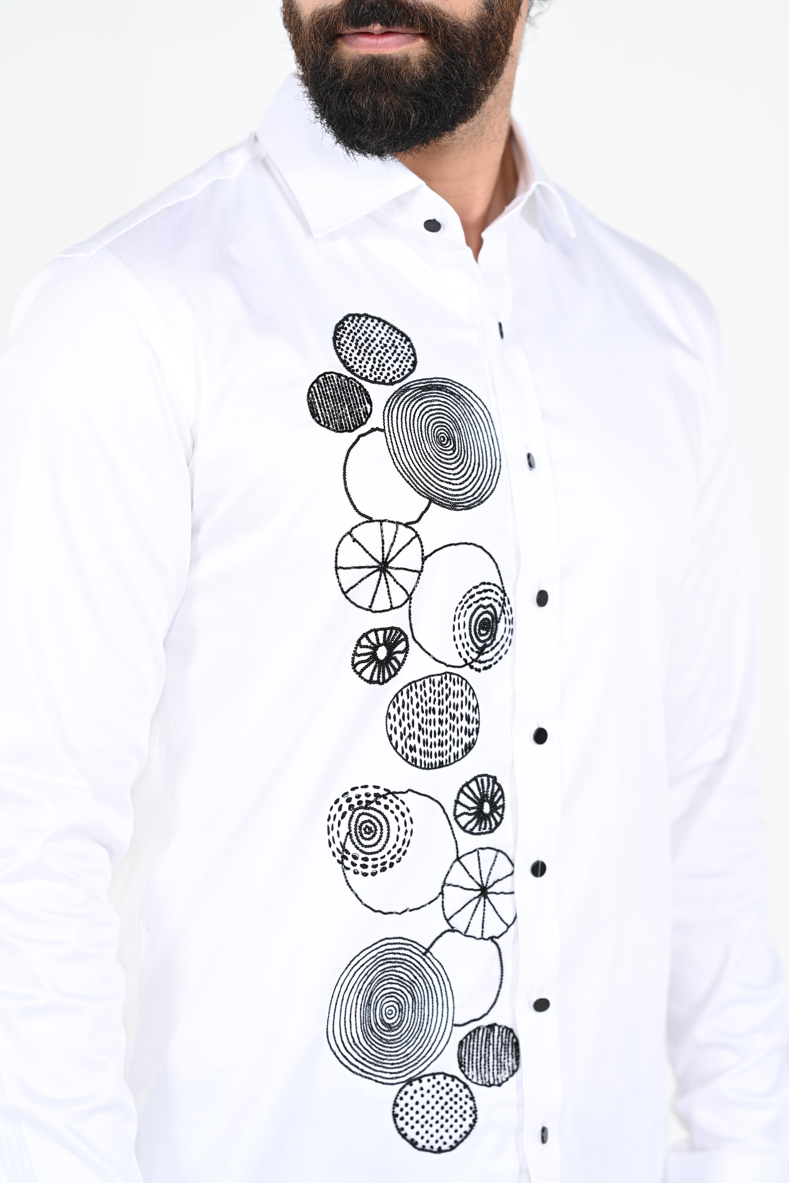 Featuring a White Circles embroidered with cutdana and chid shirt work on cotton strech base fabric .This contains only one piece. Color of the actual garment may vary due to lighting conditions during the shoot .