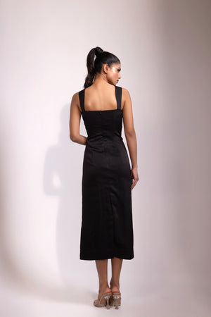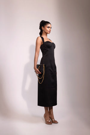 Timeless, refined, and effortlessly chic — this plain black midi dress is crafted in a flattering bodycon silhouette that hugs the curves in all the right places.