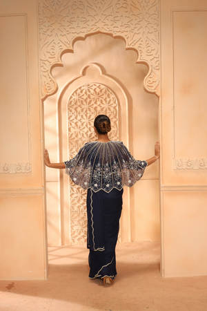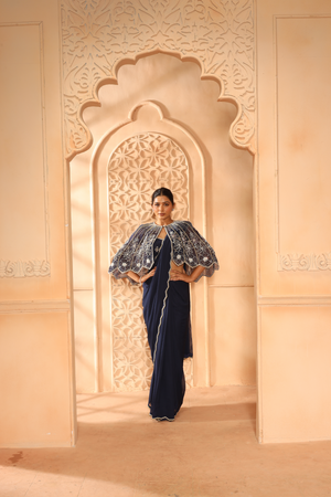 Silk Organza Heavy Emb Cape With Gorgette Emb Blouse And Saree