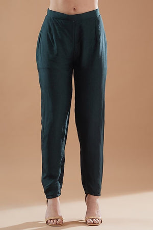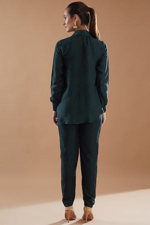 Bottle Green Flowers embroidery Cord with Pants Set.