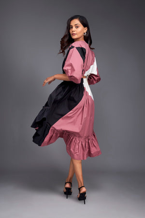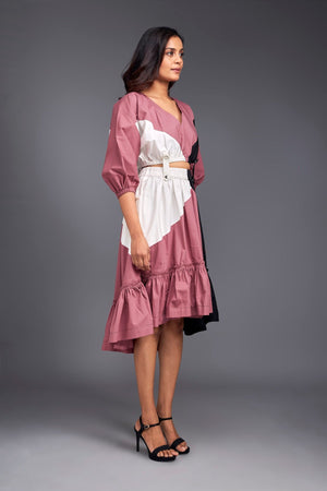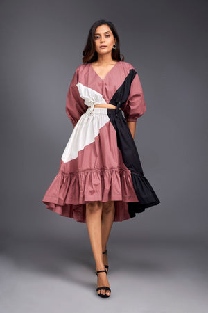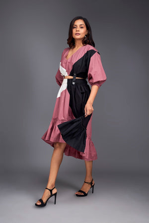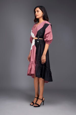Colour Block Flared Bottom Skirt With Top Co-ord