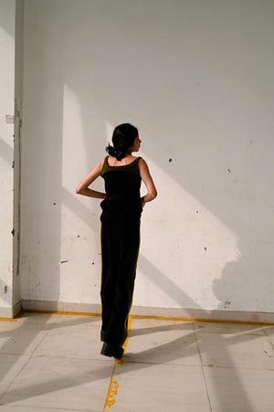 The Contoured top features hand-textured PVC cord on the front and back, lining its broad neck.
