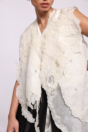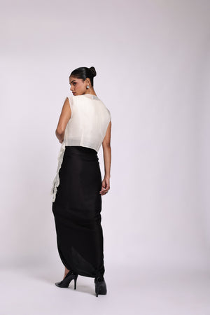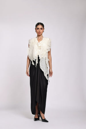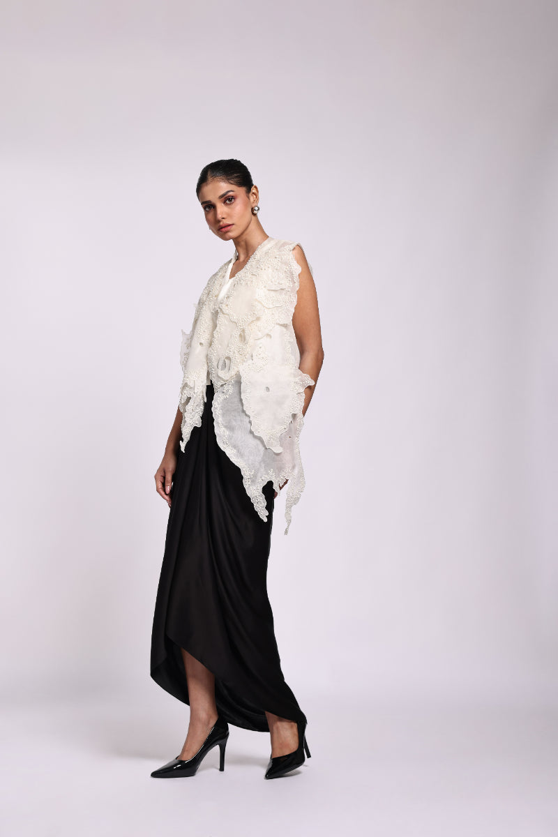Ivory Jacket With Pearl Applique Embroidery And Cowl Sarong Dress