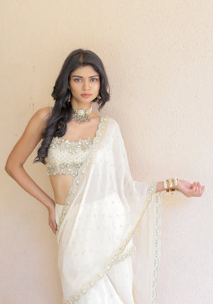 Cream Embroidered Mumtaz Saree Set
