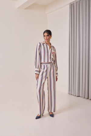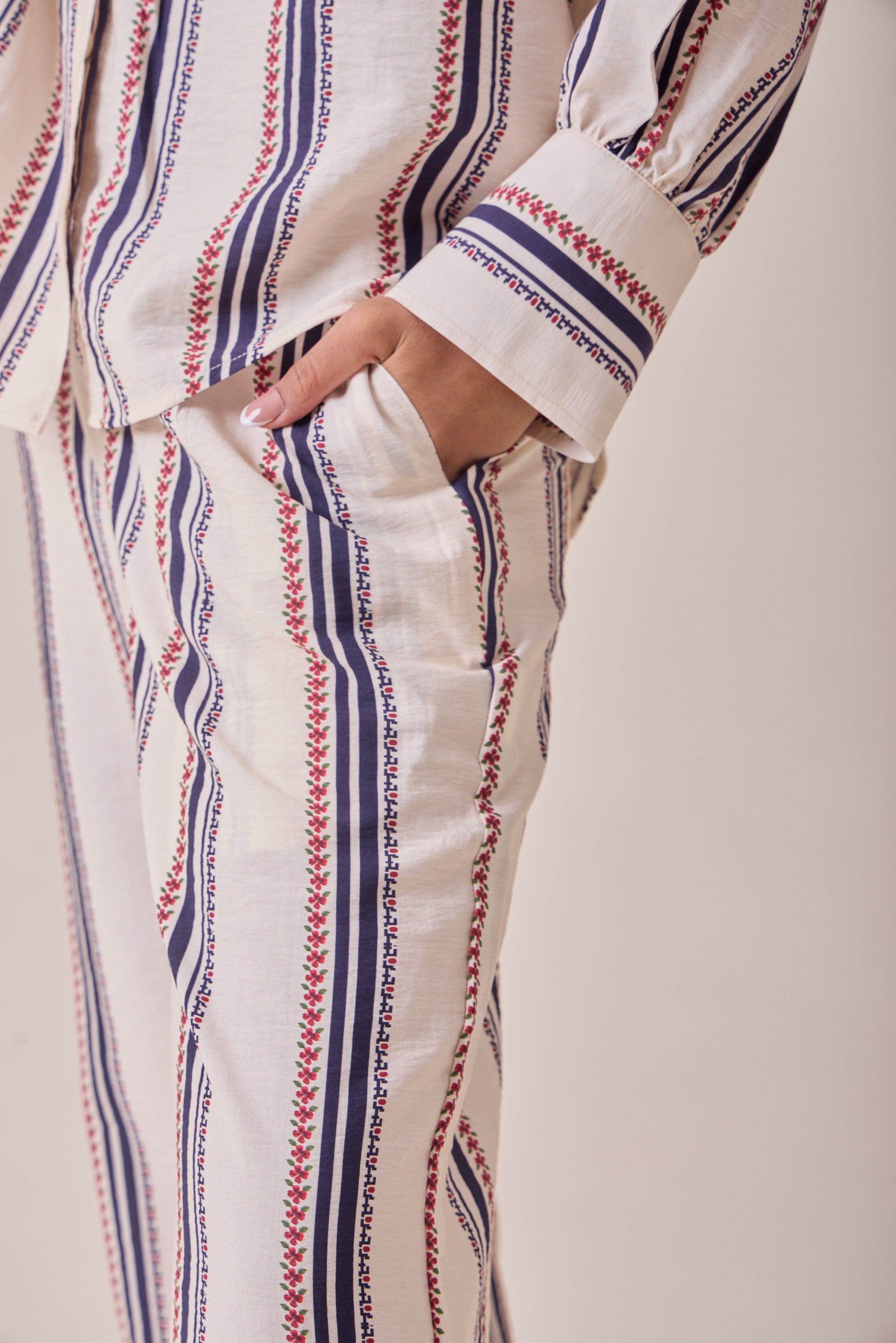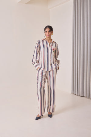 A fresh take on the classic striped shirt. Crafted in a soft crème base with subtle vertical stripes, this piece stands out with a playful floral pocket — a little garden moment stitched right onto your everyday essential. Lightweight, easy to style, and made for all-day comfort. Wear it to brunch, work, errands, or even a quick weekend getaway — it uplifts your basics without trying too hard.