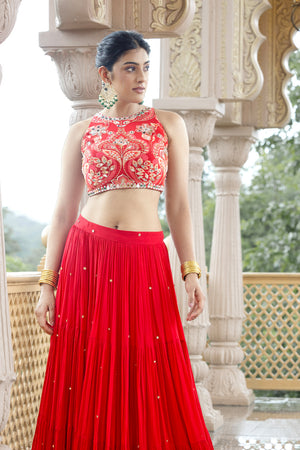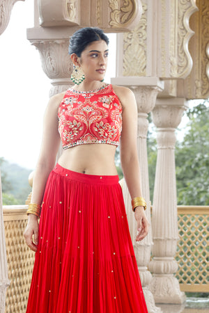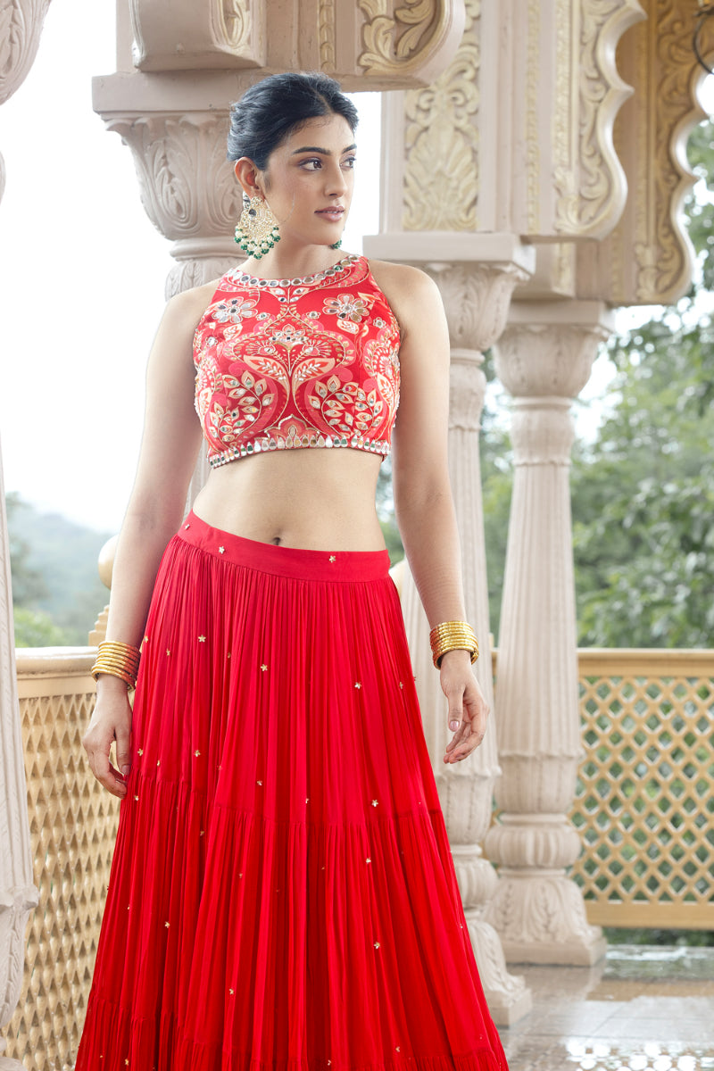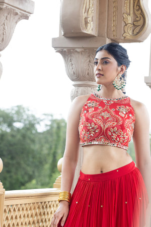 CROP TOP + SKIRT - AMAAYA RED (SOLID)