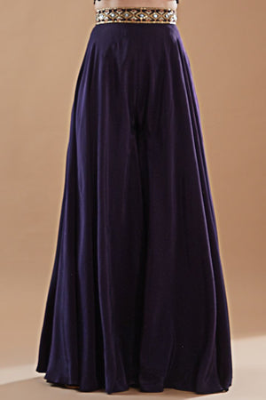 Purple Embroiderd Halter Neck Blouse with Sharara and Dupatta.