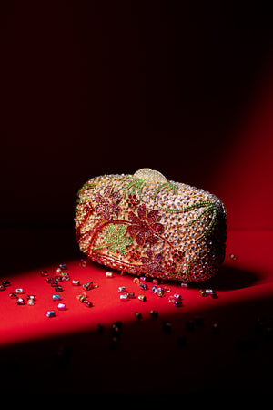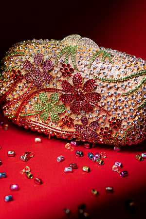 Garden Theme Bag Created With Colourfull Crystal Telling A Story Of The Blooming Flower. Comes With Small Sling Of Golden Colour To Compliment The Bag.