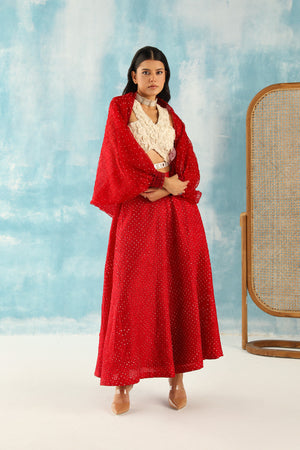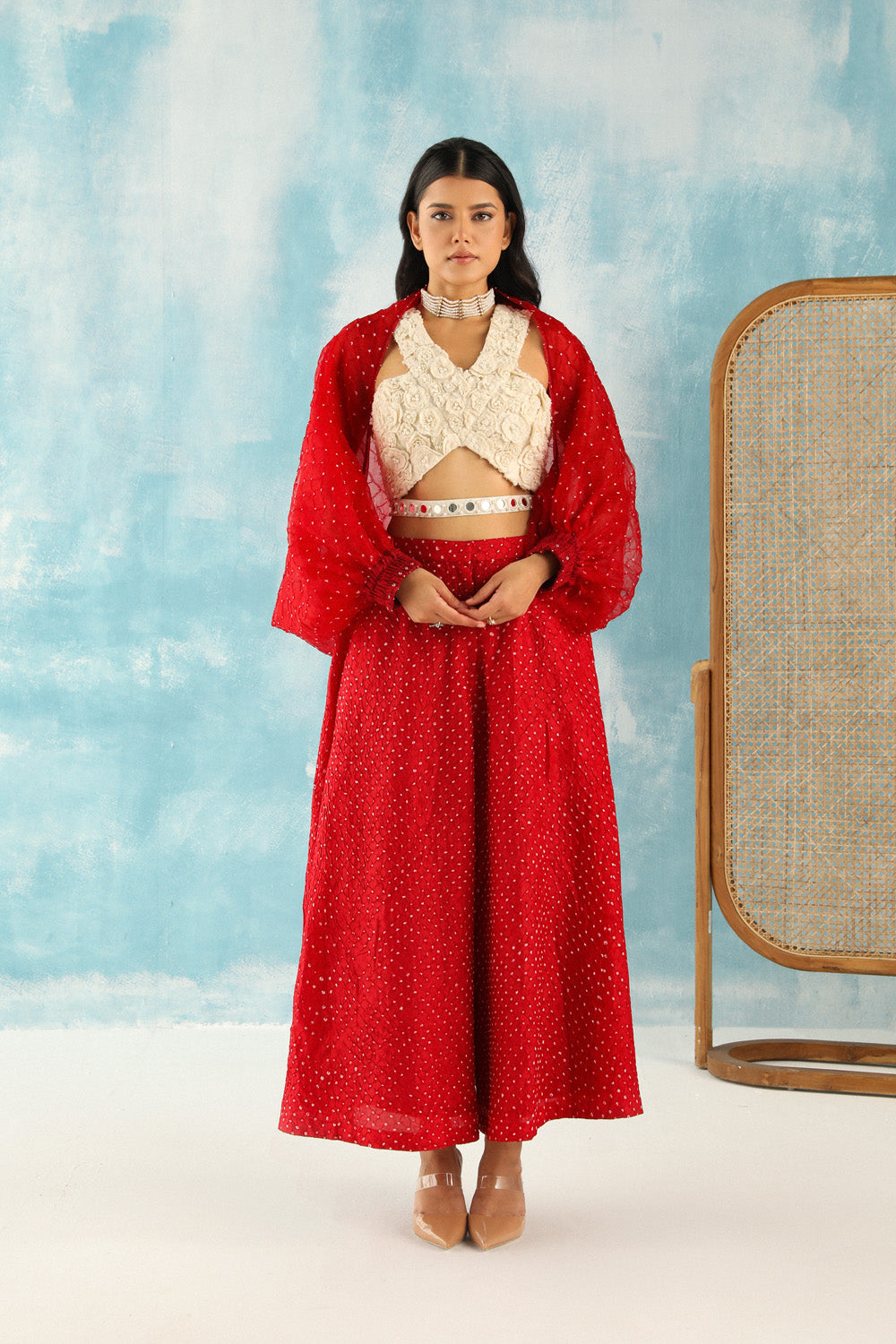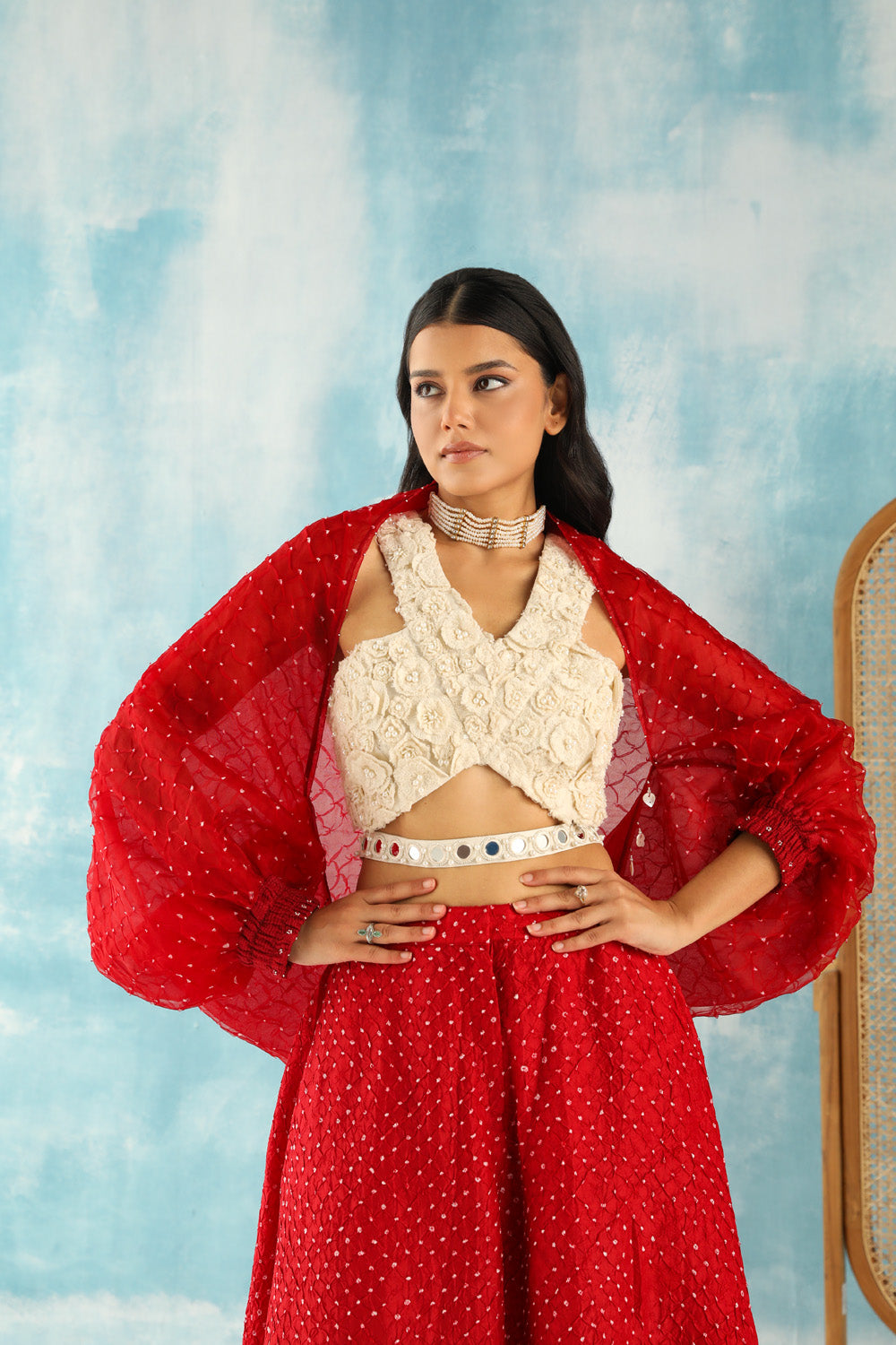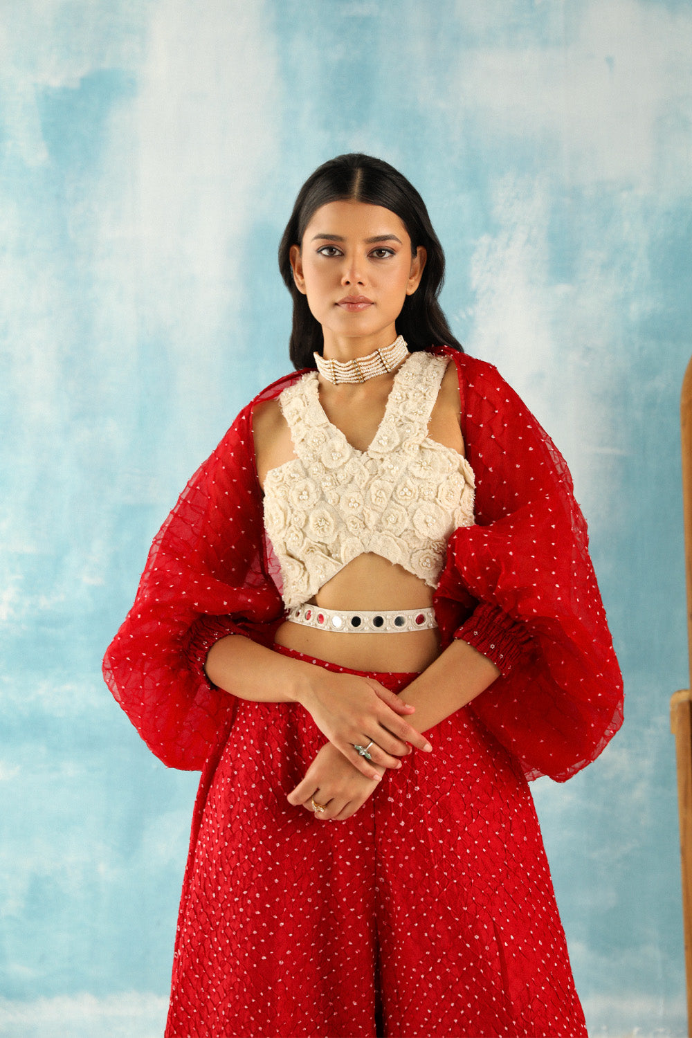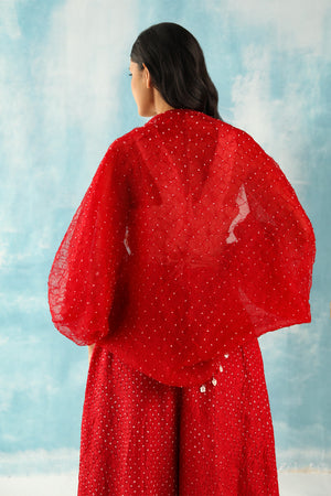 Tassle Cuff Cape in Organza Raidaana Bandhani with Tassles