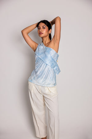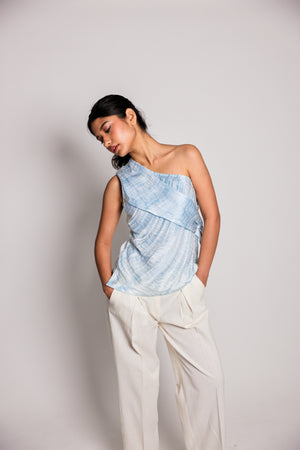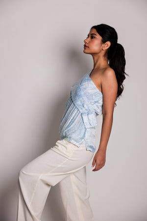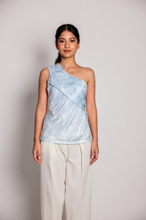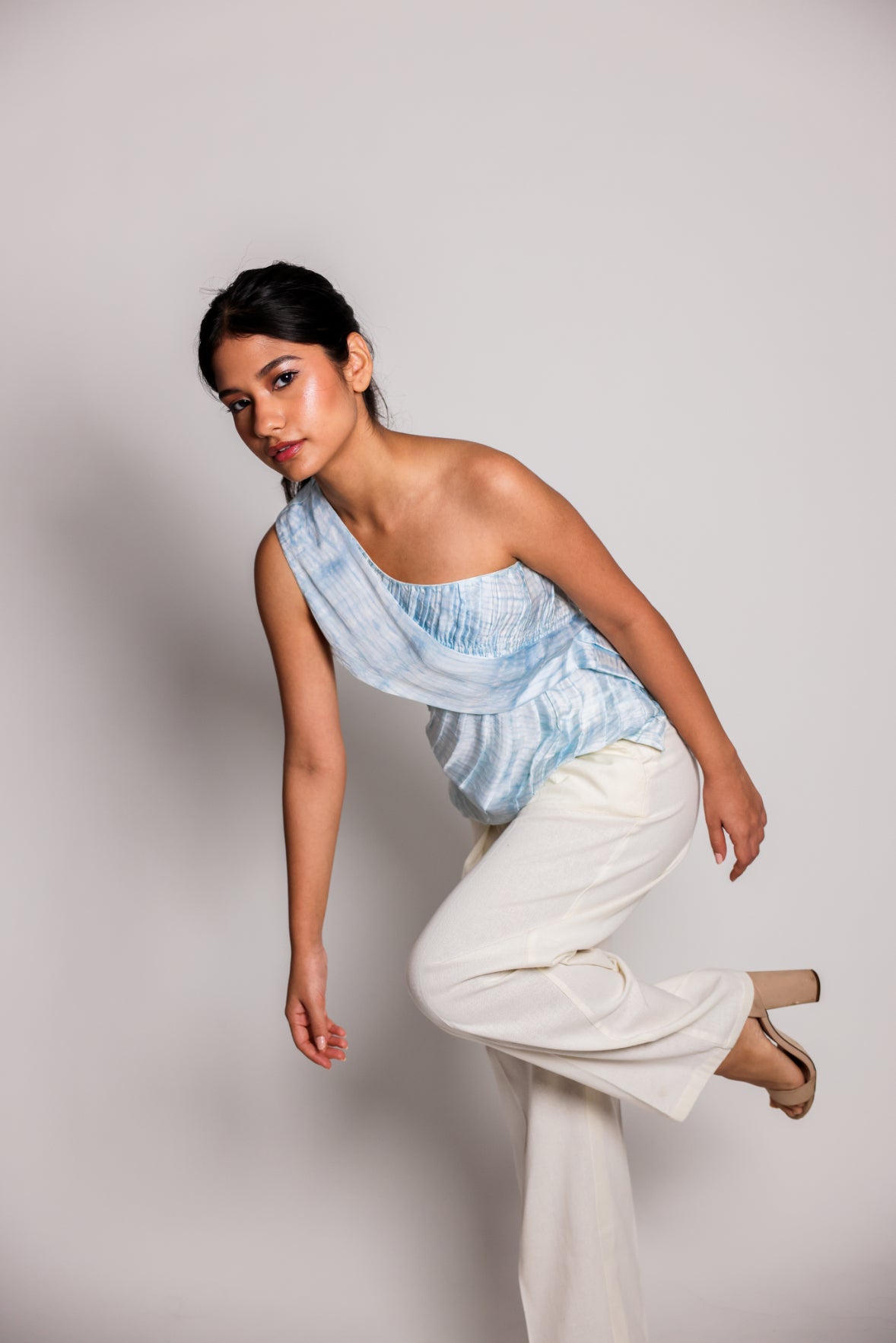One Shoulder Top With A Concept Sleeve Placed Across The Ruched Bodice.