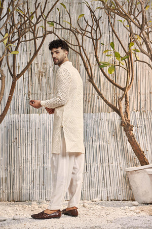 The look can be completed with the option of bundi jacket from our collection.