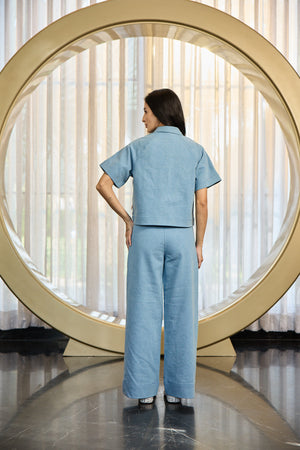 Classic blue denim meets modern tailoring in this versatile set, perfect for effortless style from day to night.