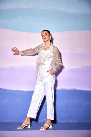 White Cotton Daisy Pants