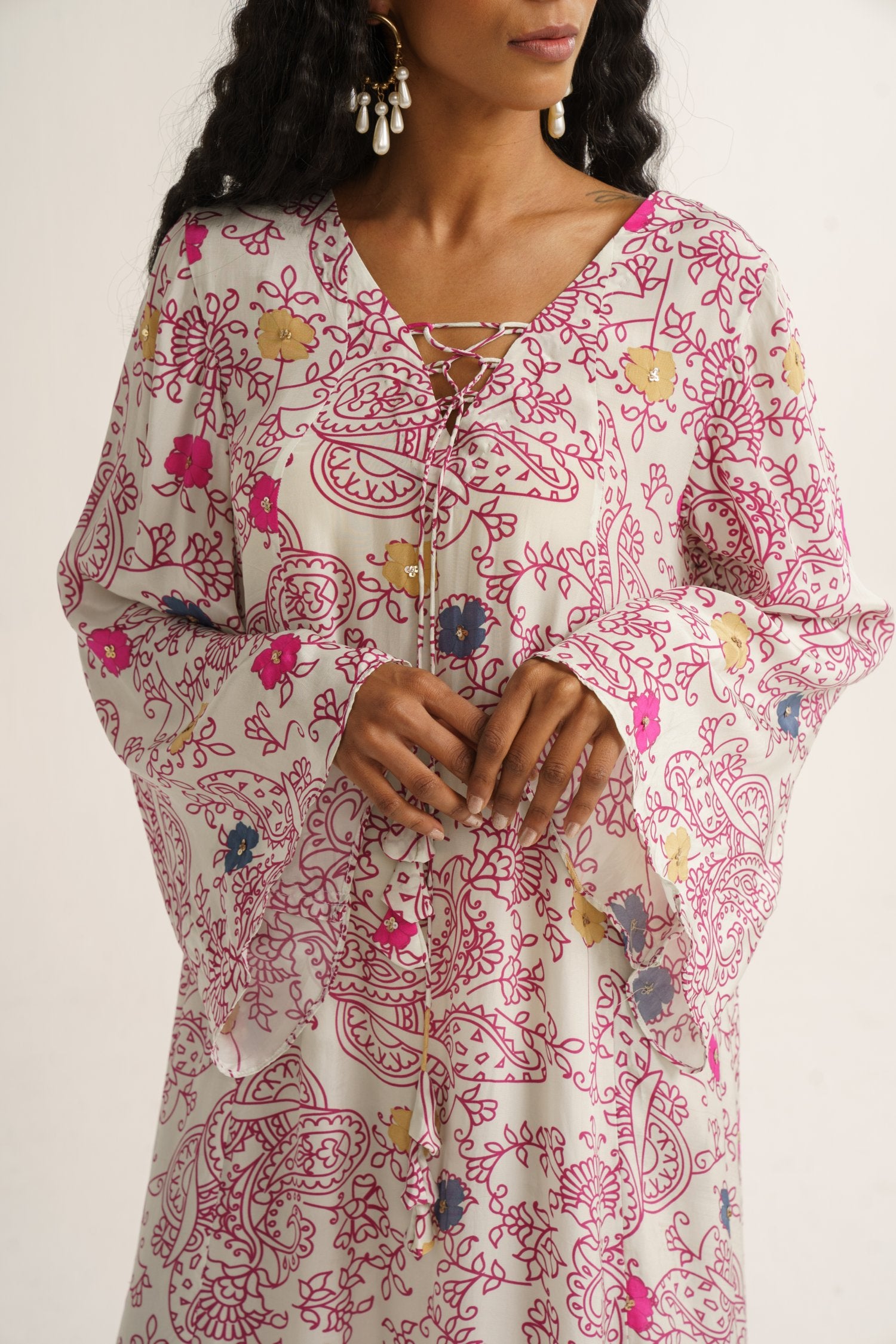 > Surface/embellishment - High definition, folkloric motif, digital print and sequence embroidery.