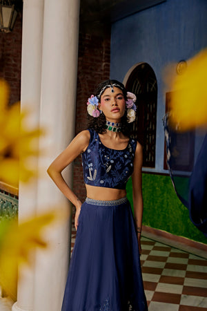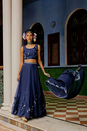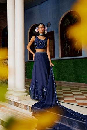 Discover understated elegance with our navy blue organza blouse, delicately adorned with appliqué work, sequins, and beads. The blouse features intricately embroidered sleeves for a touch of sophistication. Paired gracefully with an organza embroidered dupatta, this ensemble exudes charm. Perfect for special occasions, weddings, and upscale gatherings, this attire harmonizes classic aesthetics with modern allure. Elevate your style with this refined combination that captures attention and admiration effortlessly. Model Info: