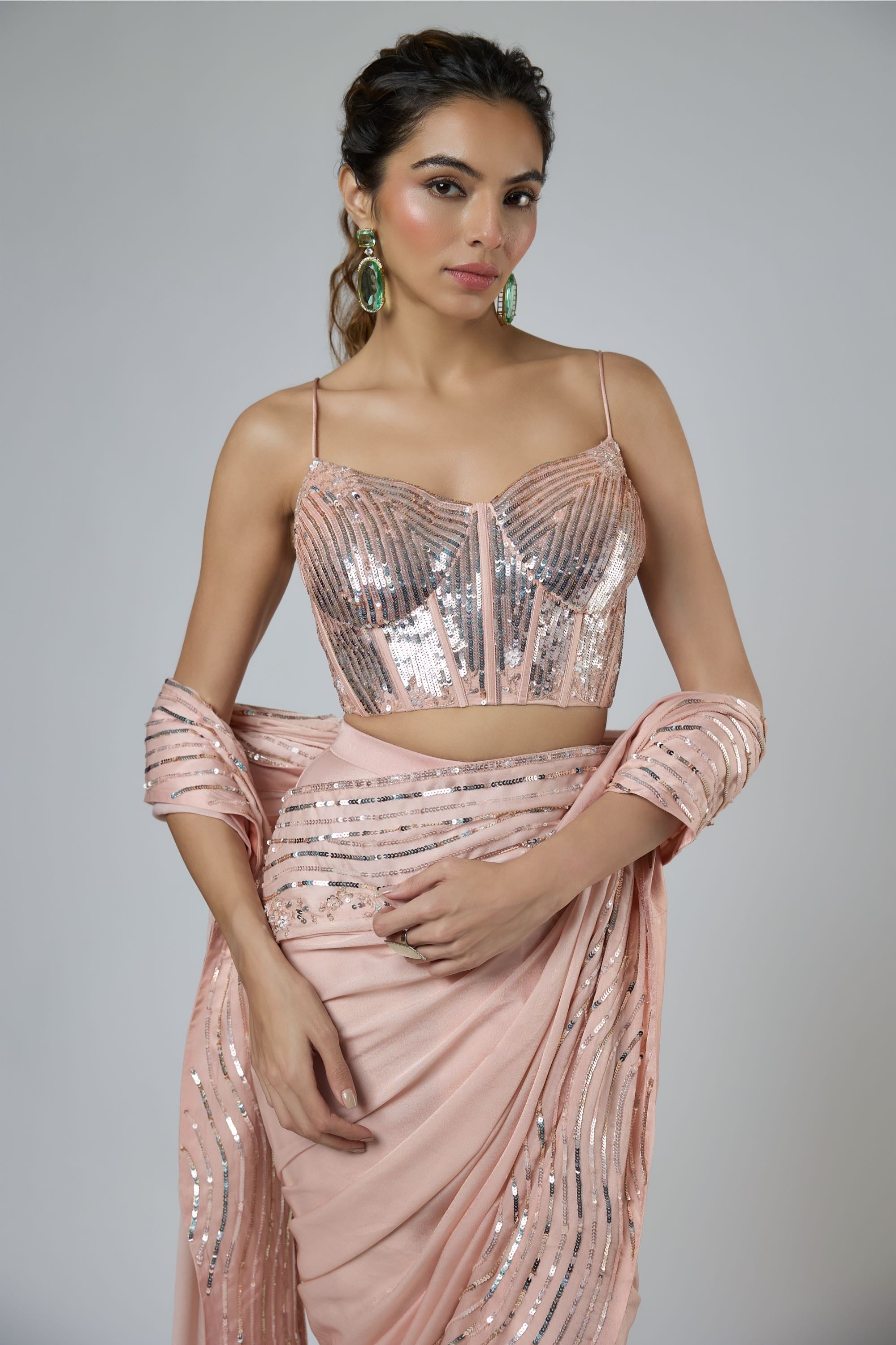 Fabric: Bemberg satin georgette saree; heavily embroidered Tussar silk corset blouse.