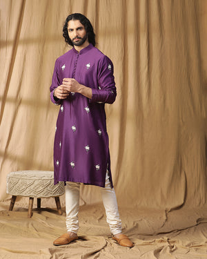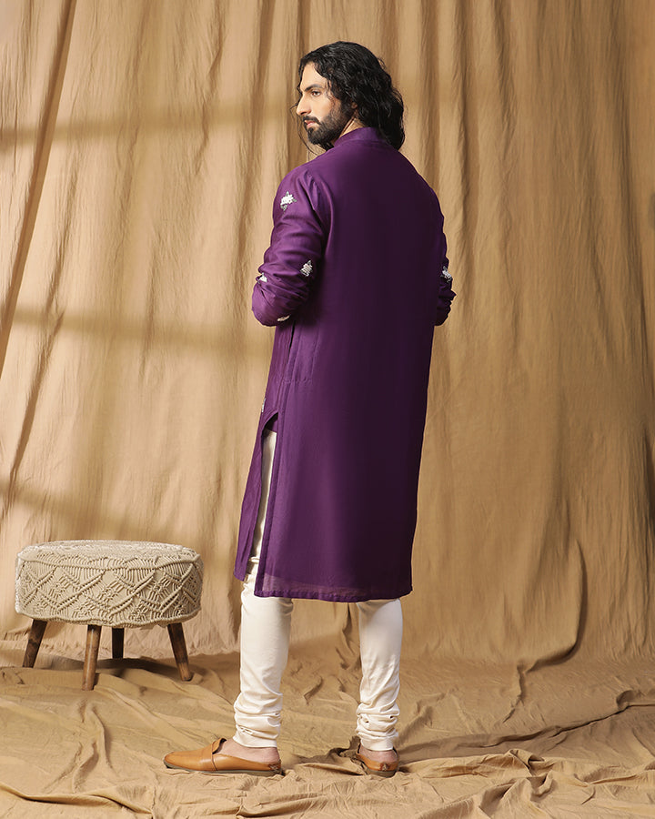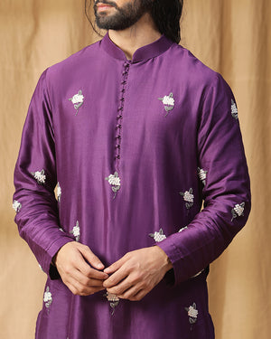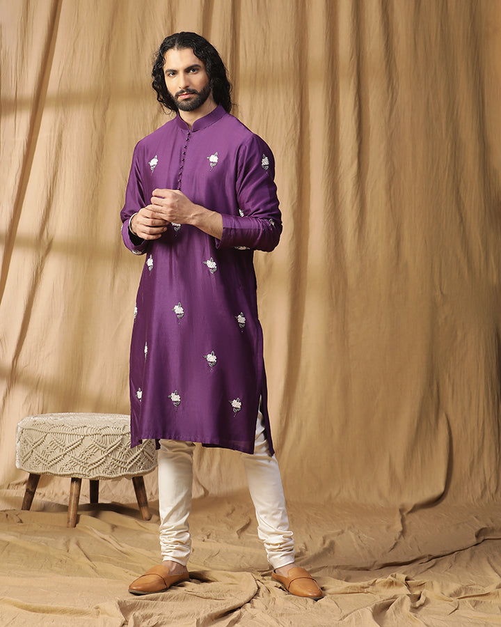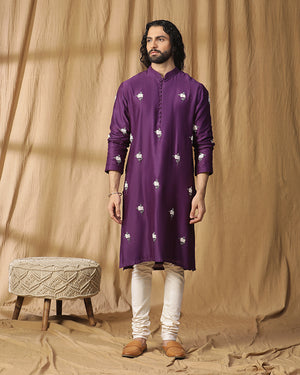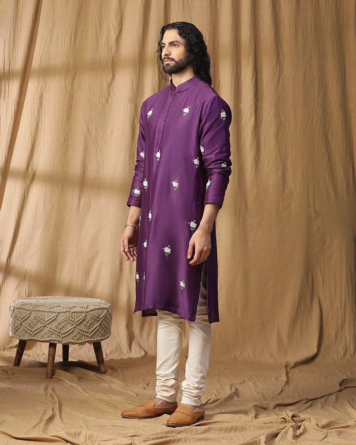 Pure chanderi silk kurta with hand embroidered pearl flowers paired with off white true comfort cotton lycra chooridar