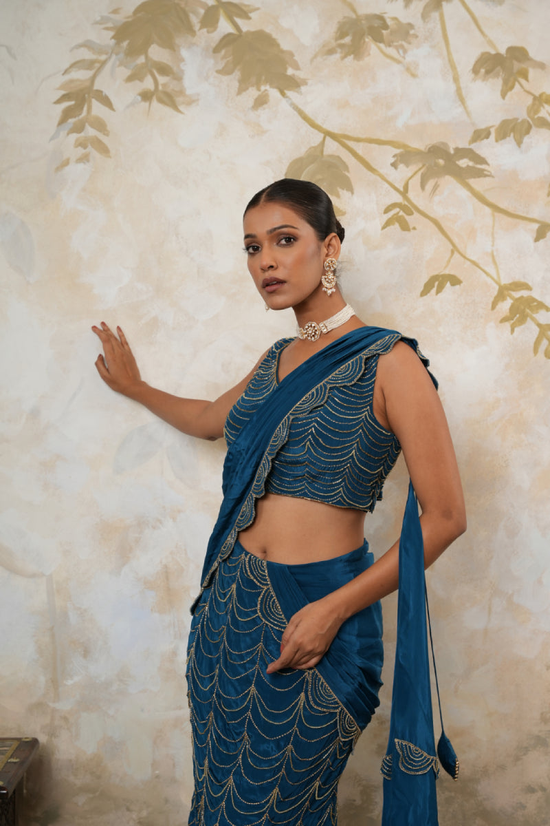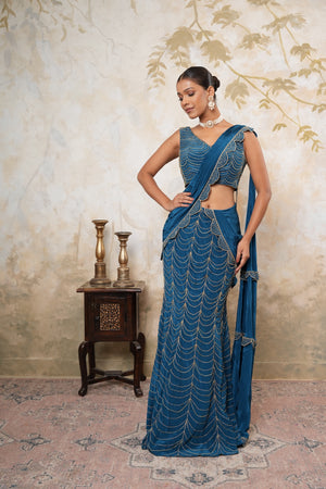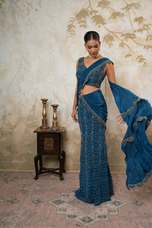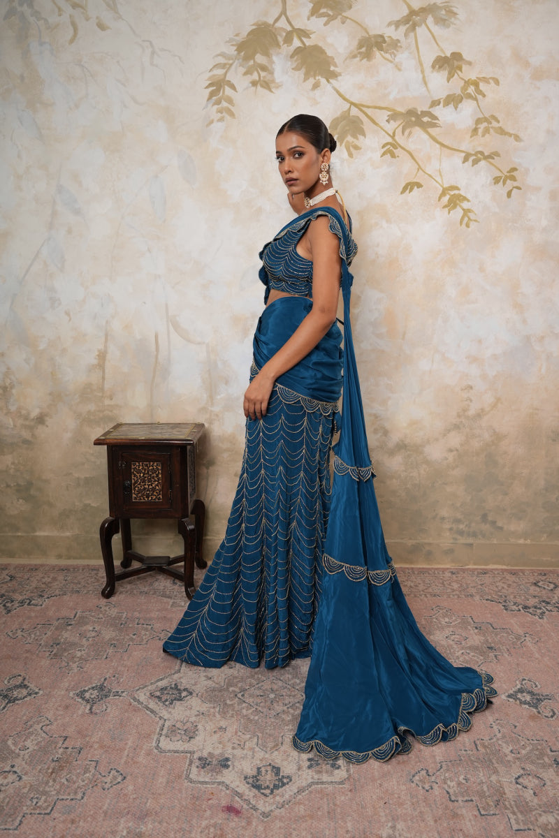 Turn heads with our Fishcut Lehenga Saree – where classic meets curve-hugging couture!
