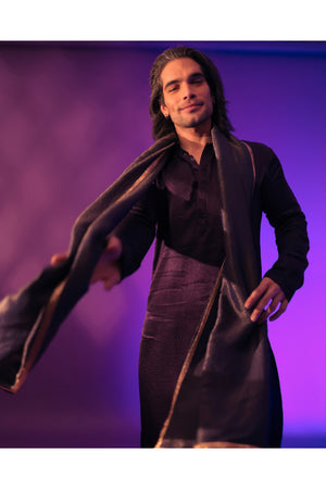 Deep Purple Kurta with Pant with Tissue Embroidered Dupatta