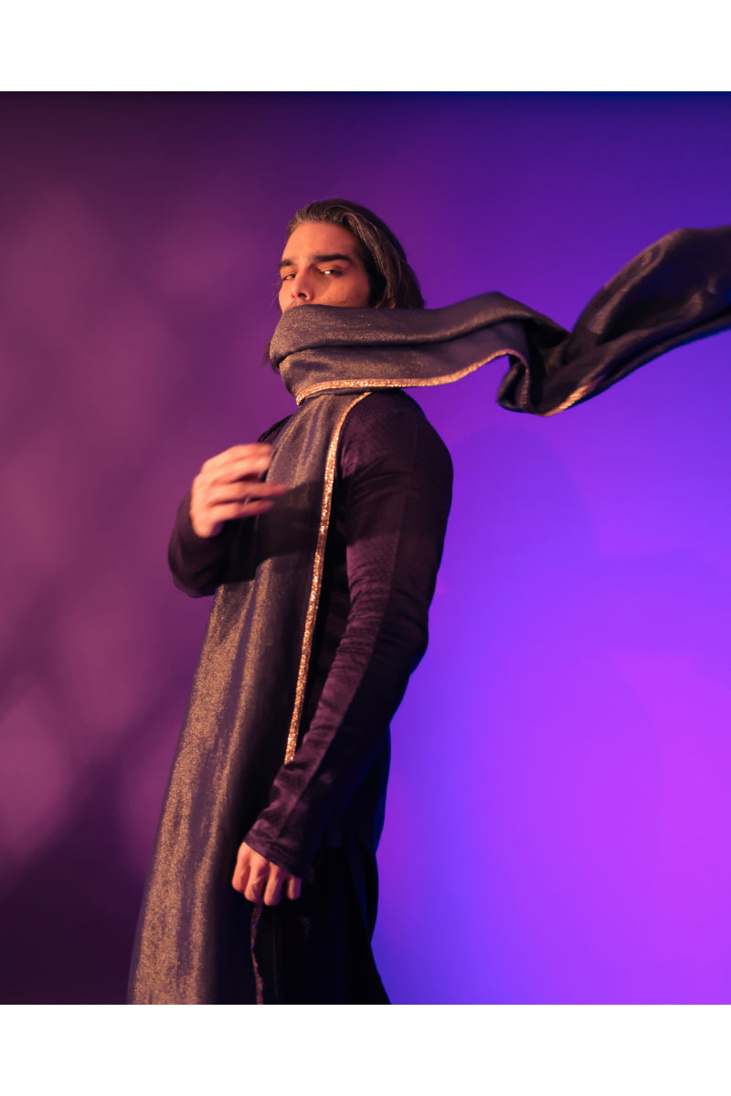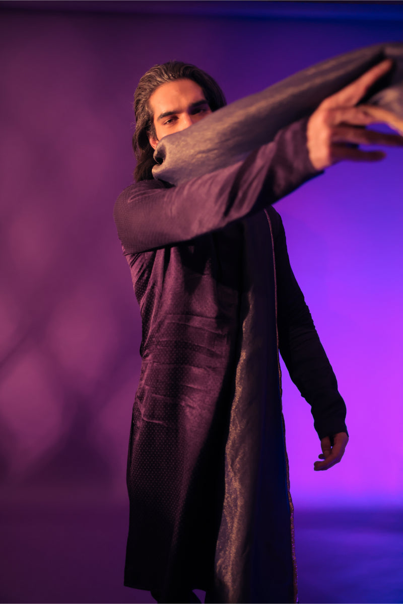 Featuring Deep Purple Kurta with Pant with Tissue Embroidered Dupatta