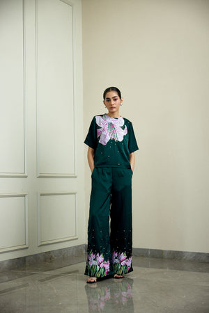 Tailored in premium poplin and adorned with our exclusive hand-painted florals, these co-ords embody modern elegance with an artistic edge. Sophisticated yet versatile, they’re designed to transition seamlessly from refined daywear to statement evening looks.
