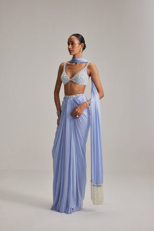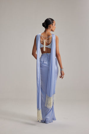 Dew Blue Satin Draped Skirt Set