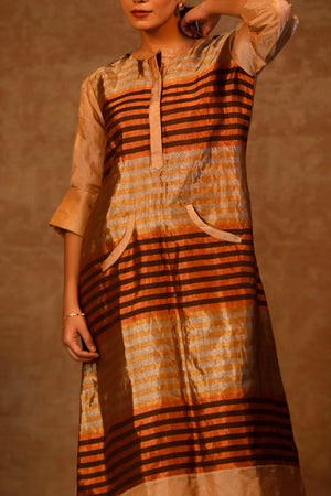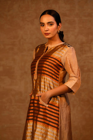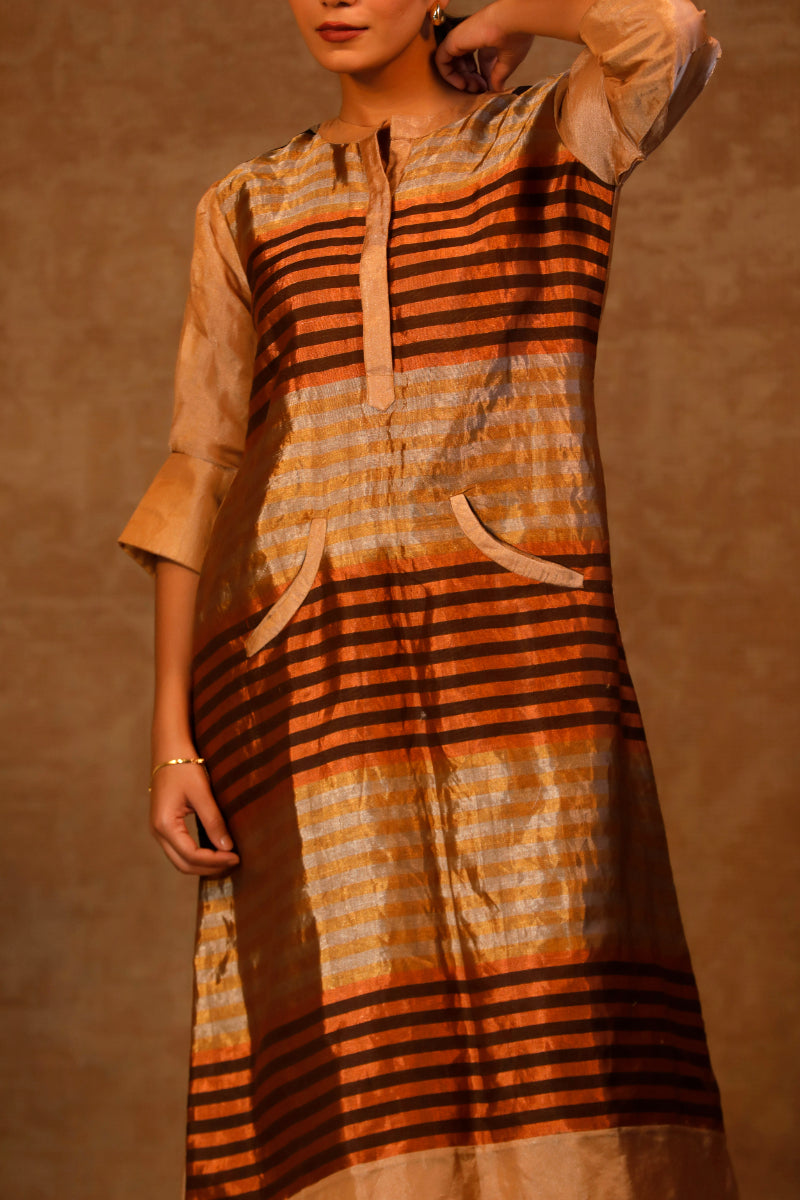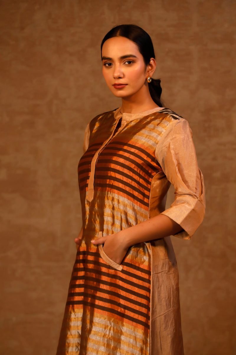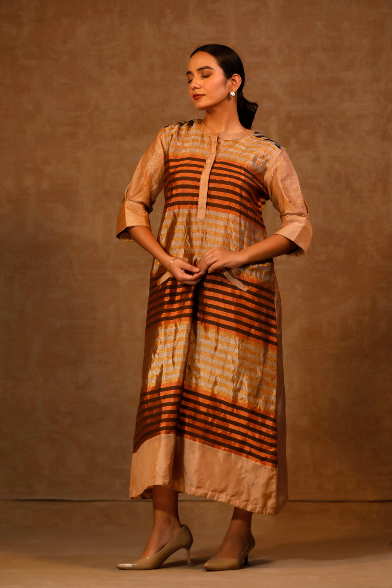 Crafted from pure tissue, this ankle-length dress is a quintessential addition to your festive wardrobe. It exudes a contemporary charm, making it an ideal choice for any celebratory occasion. With its lustrous finish and timeless appeal, this dress promises to offer a modern look that stays true to the festive spirit.