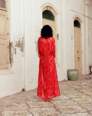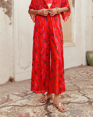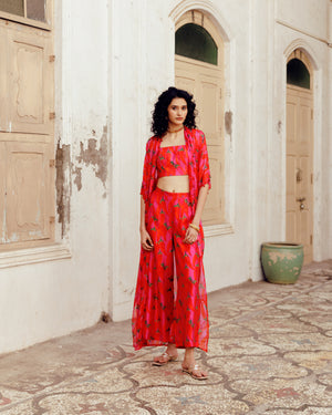 Pink Chilli Print Tabby Jacket With Bustier And Pants
