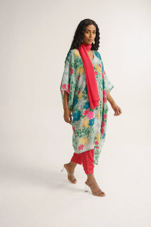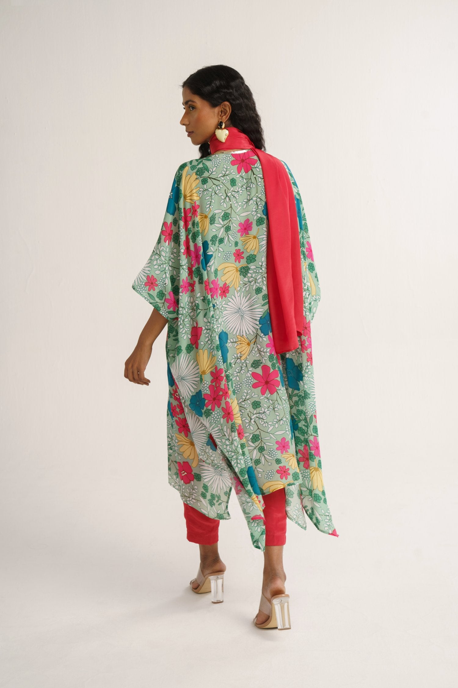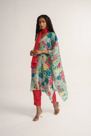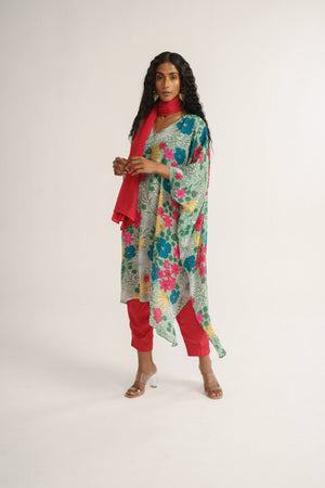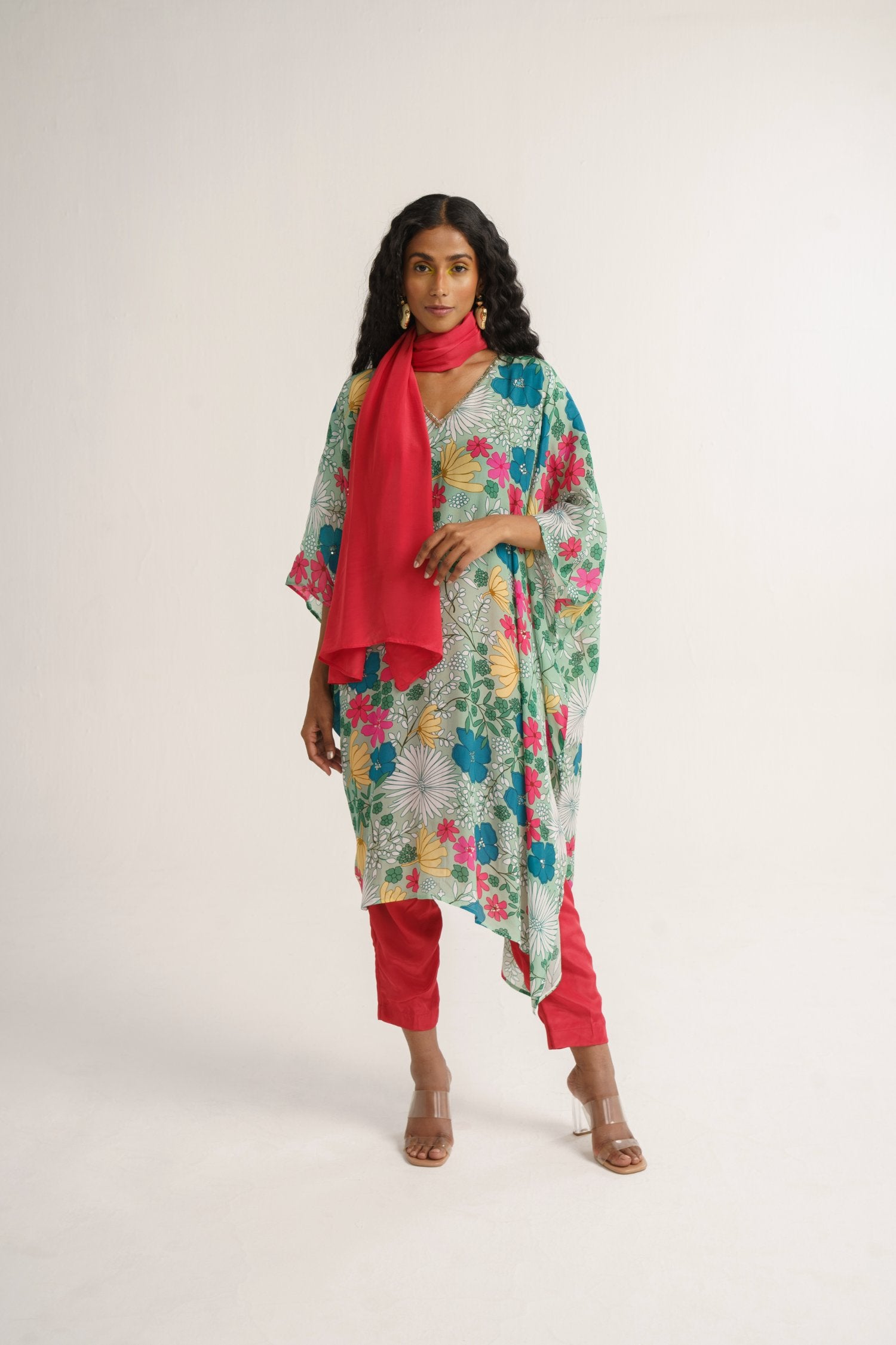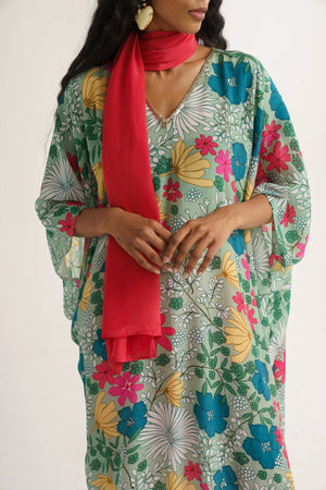 > Key features - The set has sequence highlighted kaftan with short dupatta and cropped pants.