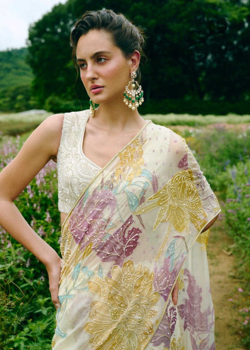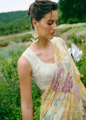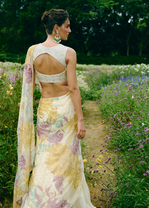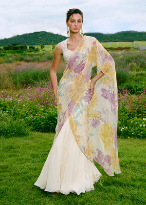 Floral Big Print Highlighted Embroidered Lehenga Saree With Embellished Blouse