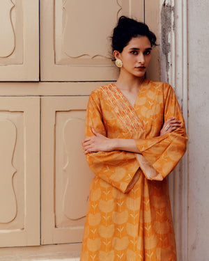 Rust Bandhani V Neck Kaftan Style Kurta Set