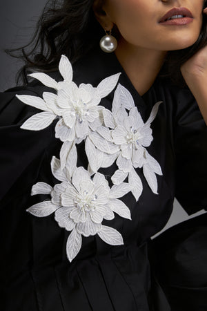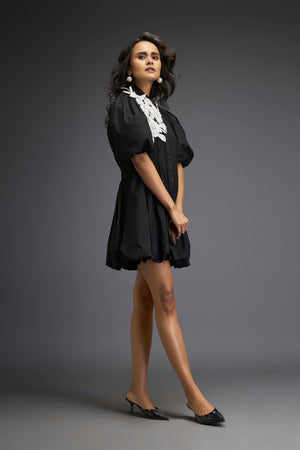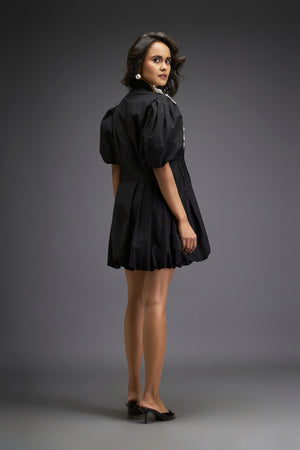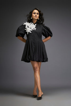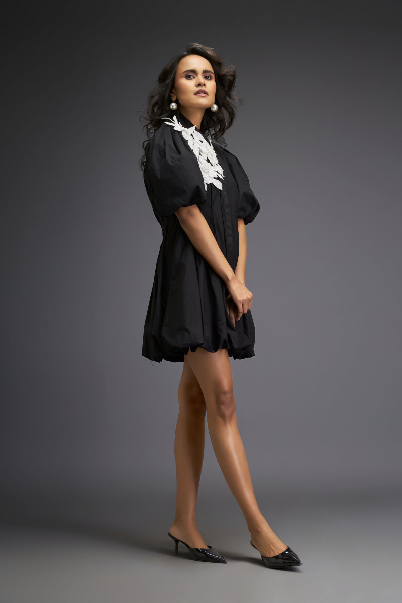 Mini Bubble Dress With Embroidered Floral Accents