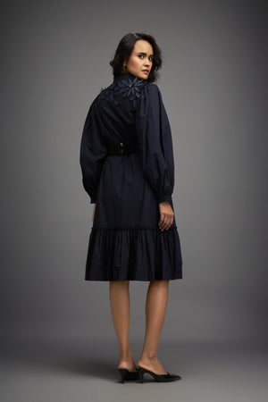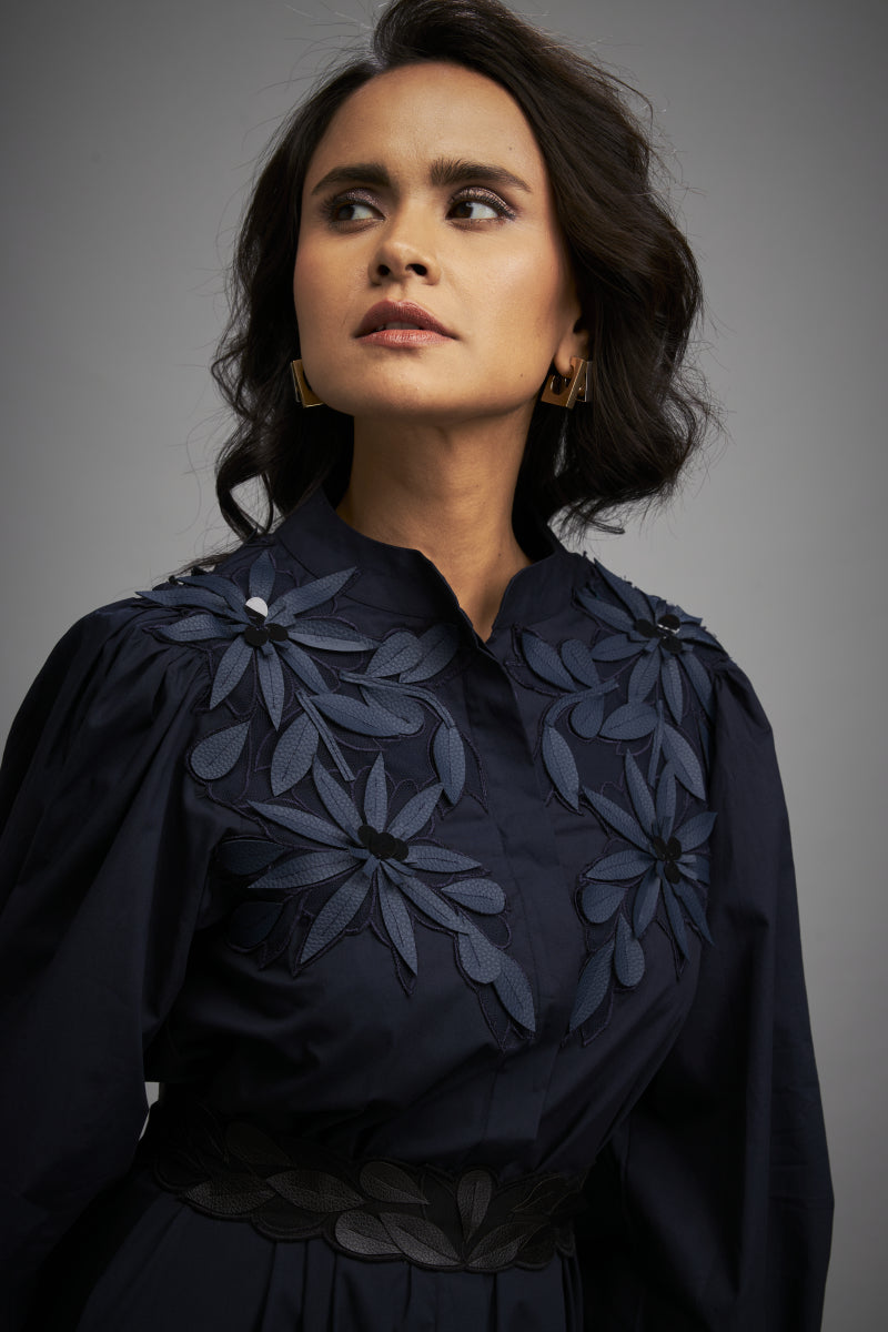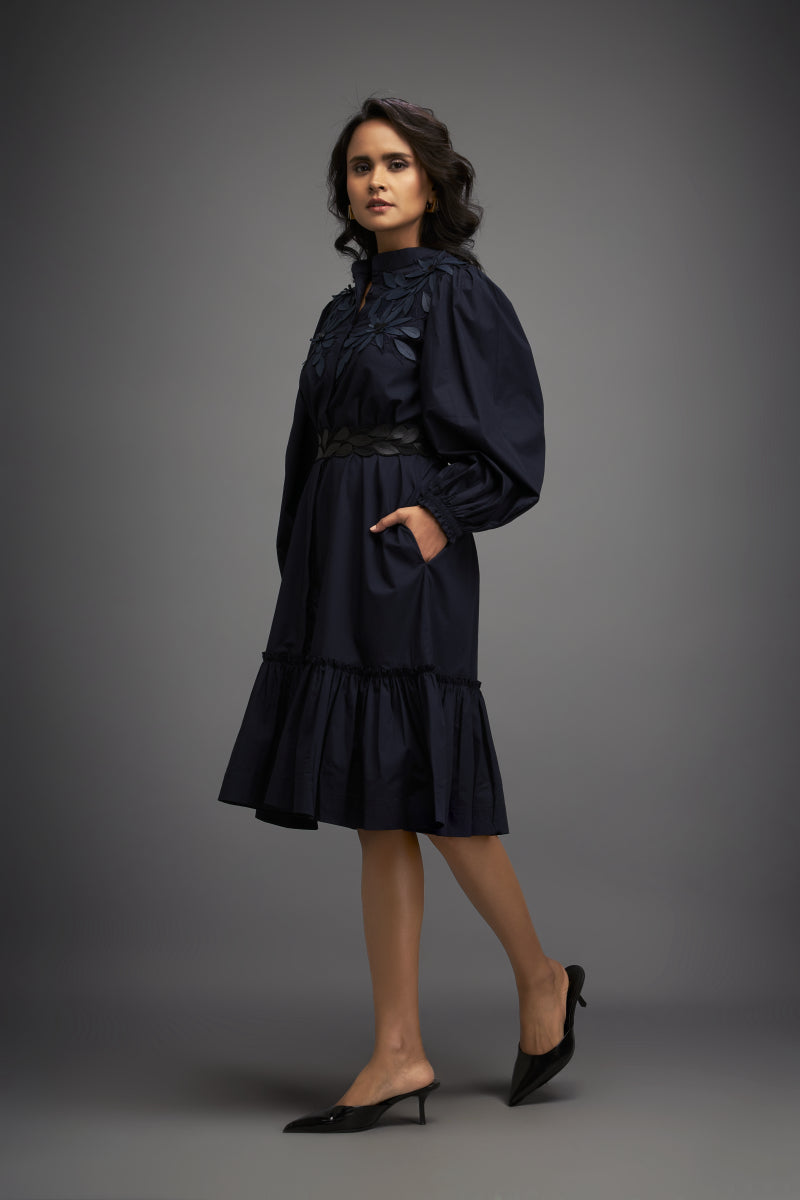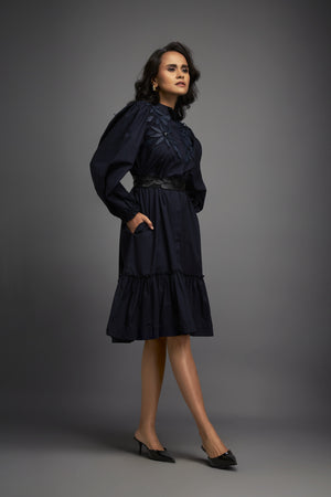 Sophisticated Dress With Detailed Floral Embroidery And Long Structured Sleeves