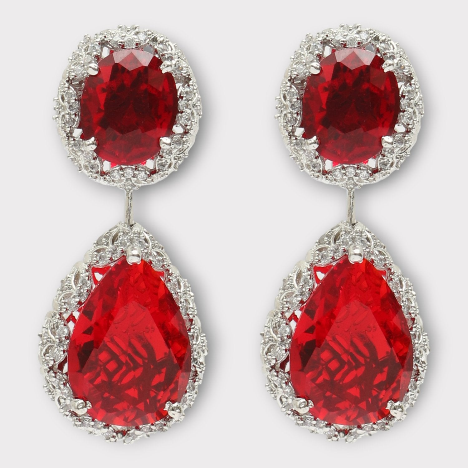 This Beautiful Drop Rubies In White Finish For Contemporary Look .Best Can Be Worn For Your Cocktail Parties