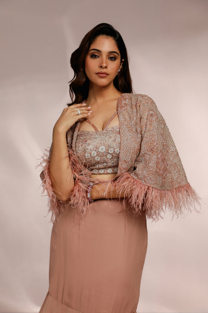 Dusky Pink Fishcut Skirt With Blouse And Short Cape