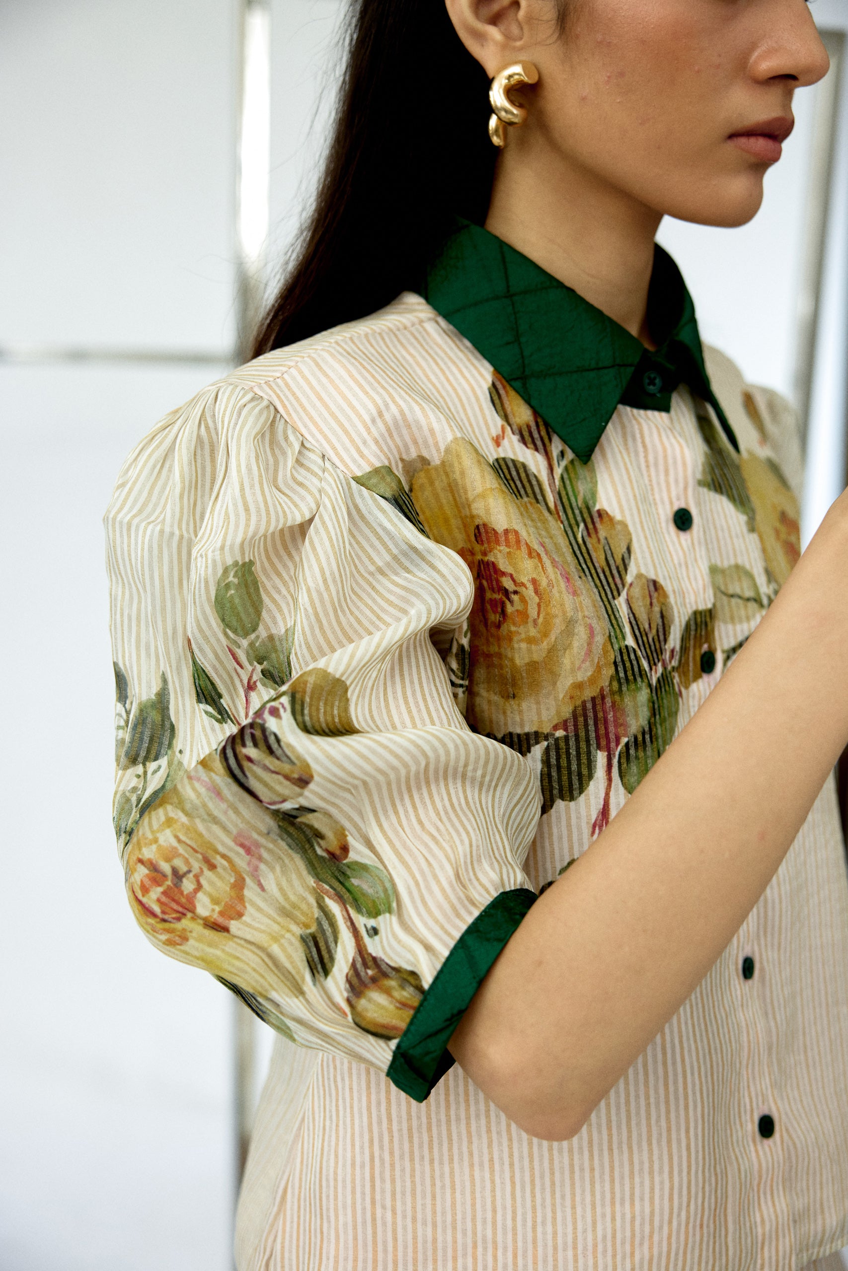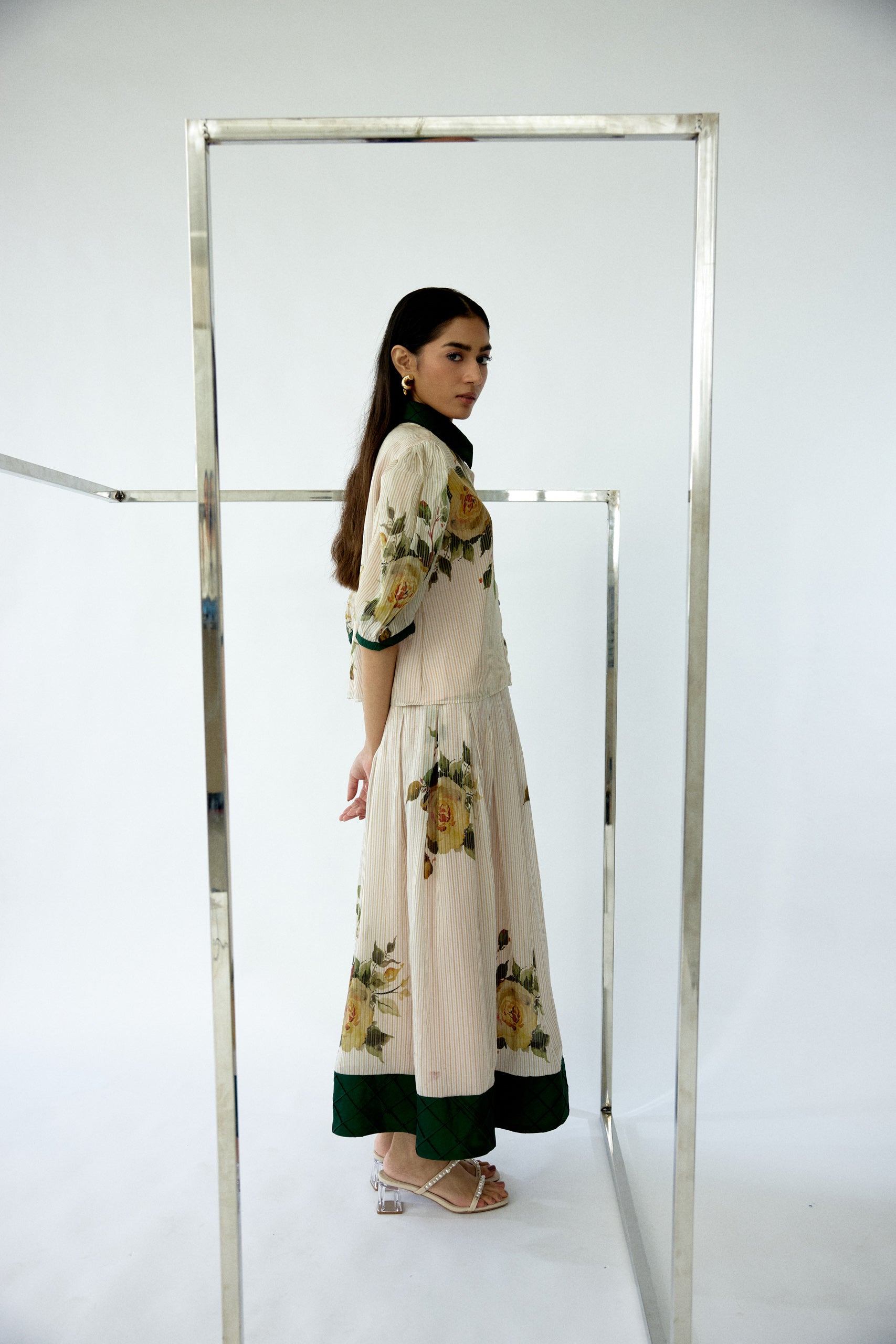 Crafted from high-quality Tissue Organza and featuring our signature hand-painted floral design, these Slit skirt co-ord sets represent contemporary sophistication with an artistic flair. Elegant and adaptable, they effortlessly shift from polished daytime attire to striking evening ensembles.
