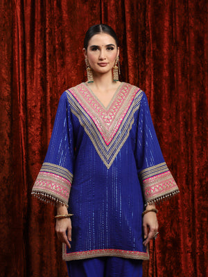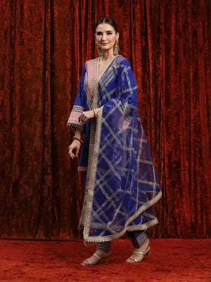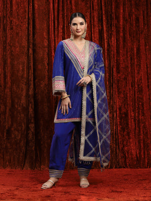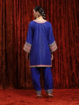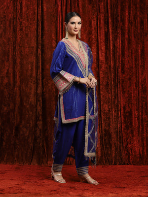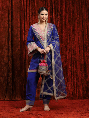 Electric Blue & Rani Kurta Pant Dupatta Set