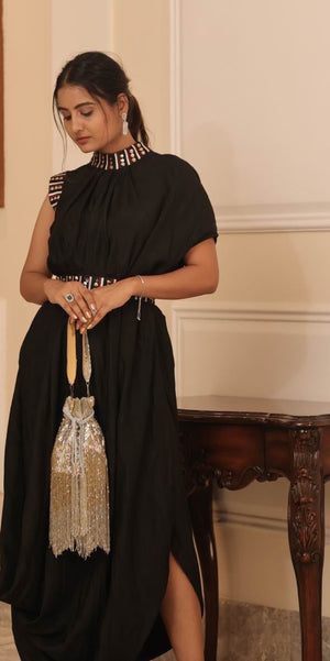 Our Elixir Sequins Fringed Potli Bags are super-hot, year-round! The traditional silhouette with exquisite cutdana handwork and the sequin handle are perfect to add that oomph to your overall look and make a strong style statement, no matter what the occasion.