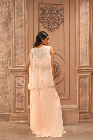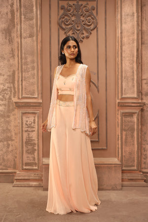 Gorgette Emb Blouse And Lehenga With All Over Emb On Silk Organza Jacket