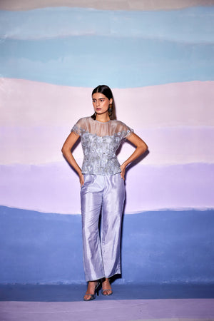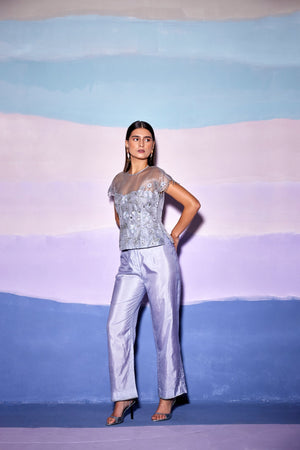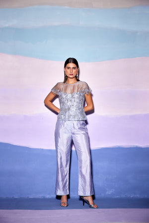 Grey Organza Embellished Top