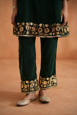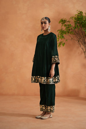 Emerald Green Velvet Embroidered Tunic And Pants