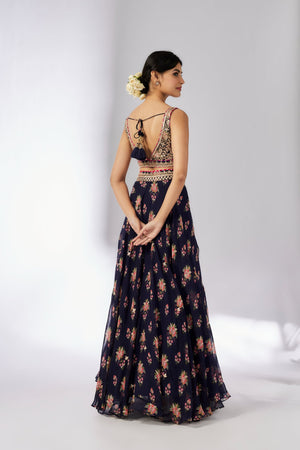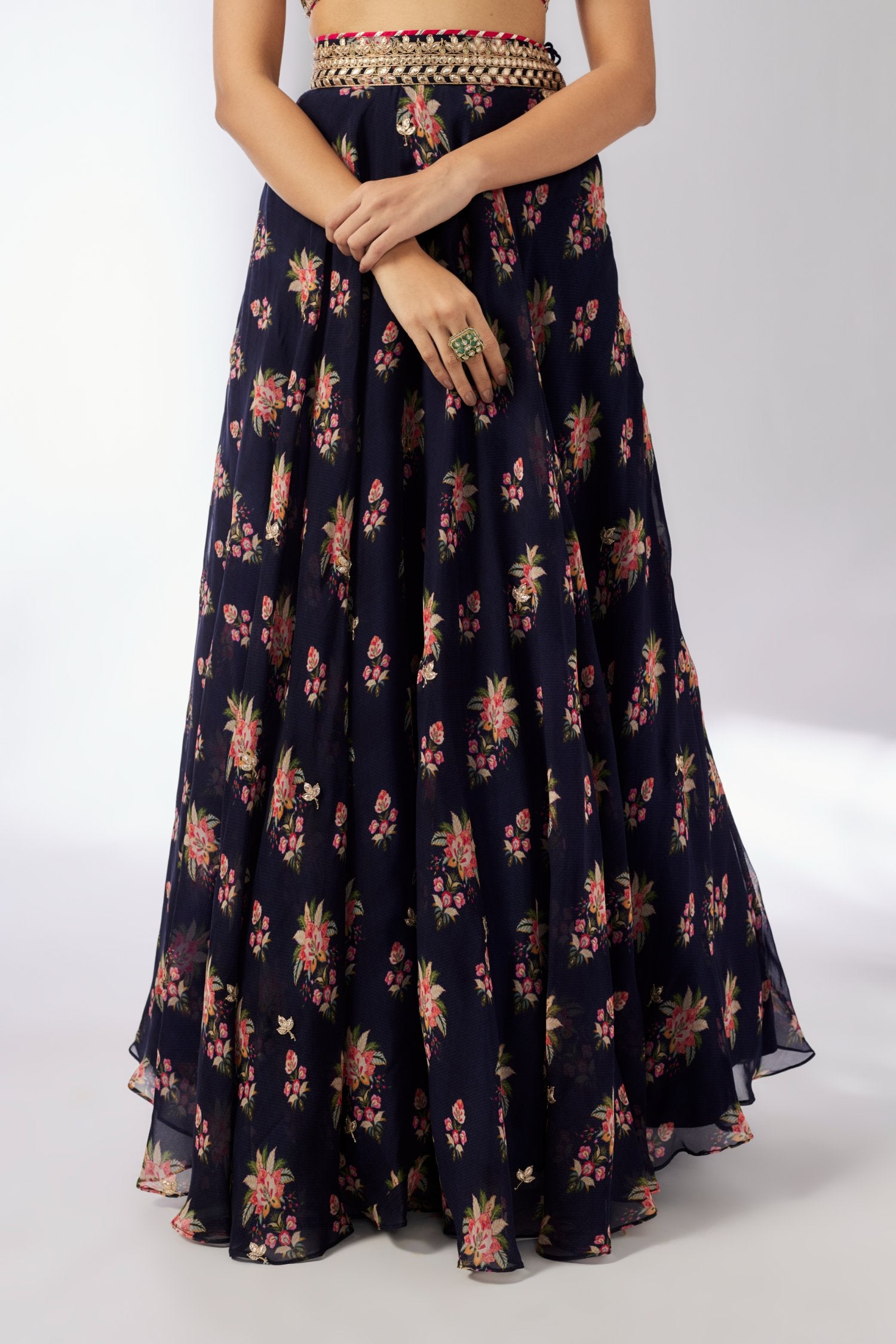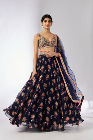 Featuring this gorgeous lehenga set Paired with blouse and dupatta. The embroidery combines gold with pretty threadwork that give this a young, happy vibe.