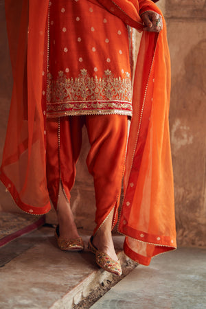 FAHMIDA - BURNT ORANGE SHORT KURTA WITH SALWAR AND DUPATTA
