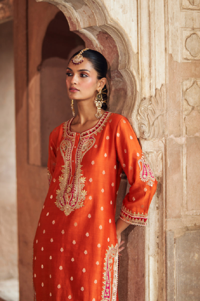 FAHMIDA - BURNT ORANGE SHORT KURTA WITH SALWAR