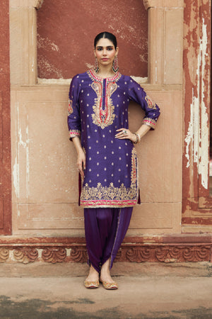 FAHMIDA - DEEP PURPLE SHORT KURTA WITH SALWAR