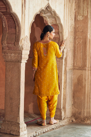 FAHMIDA - MUSTARD SHORT KURTA WITH SALWAR