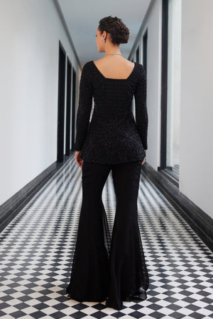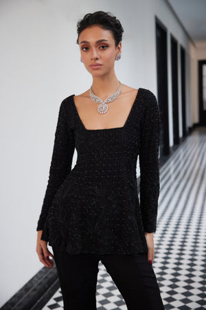 Tone On Tone Checks And Paisley Full Sleeves Peplum Kurta With Plain Sharaa Pants
