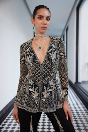 Geometric Emb Blazer With Geometric Emb Pointed Kali Sharar