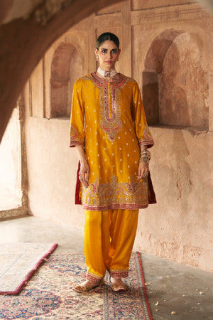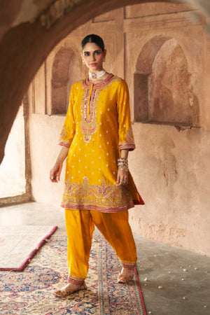 FARHANA - MUSTARD SHORT KURTA WITH SALWAR AND DUPATTA