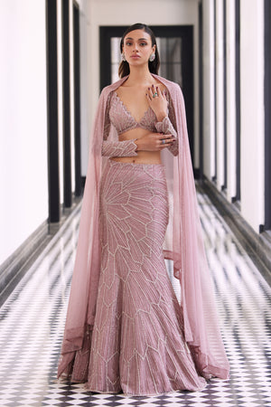 Pointed Petals Fish Cut Heavy Lehenga And Full Sleeves Blouse And Duptta